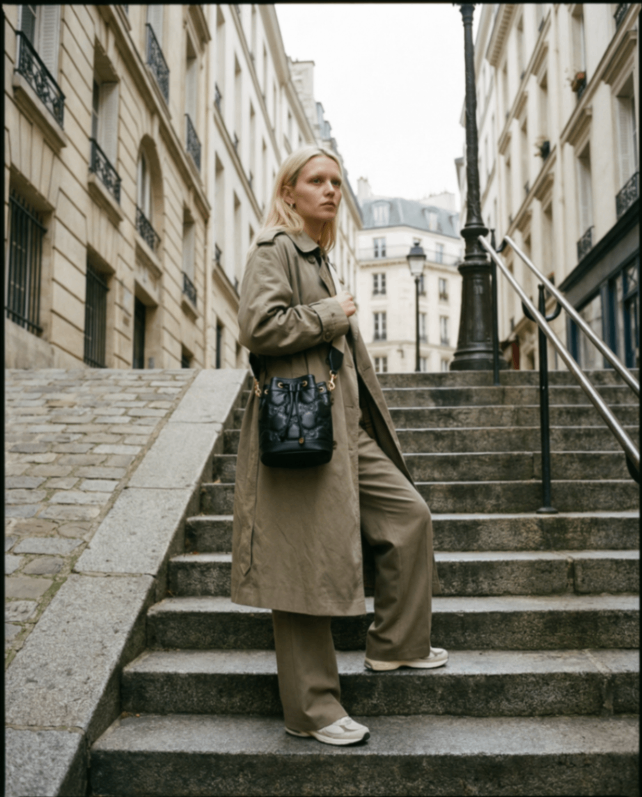 La large bandoulière bicolore amovible permet de varier les portés, à l’épaule ou en crossbody, selon le style et le moment de la journée. Son format compact mais bien pensé accueille l’essentiel – téléphone, portefeuille, clés, maquillage – sans encombrement, du matin au soir.